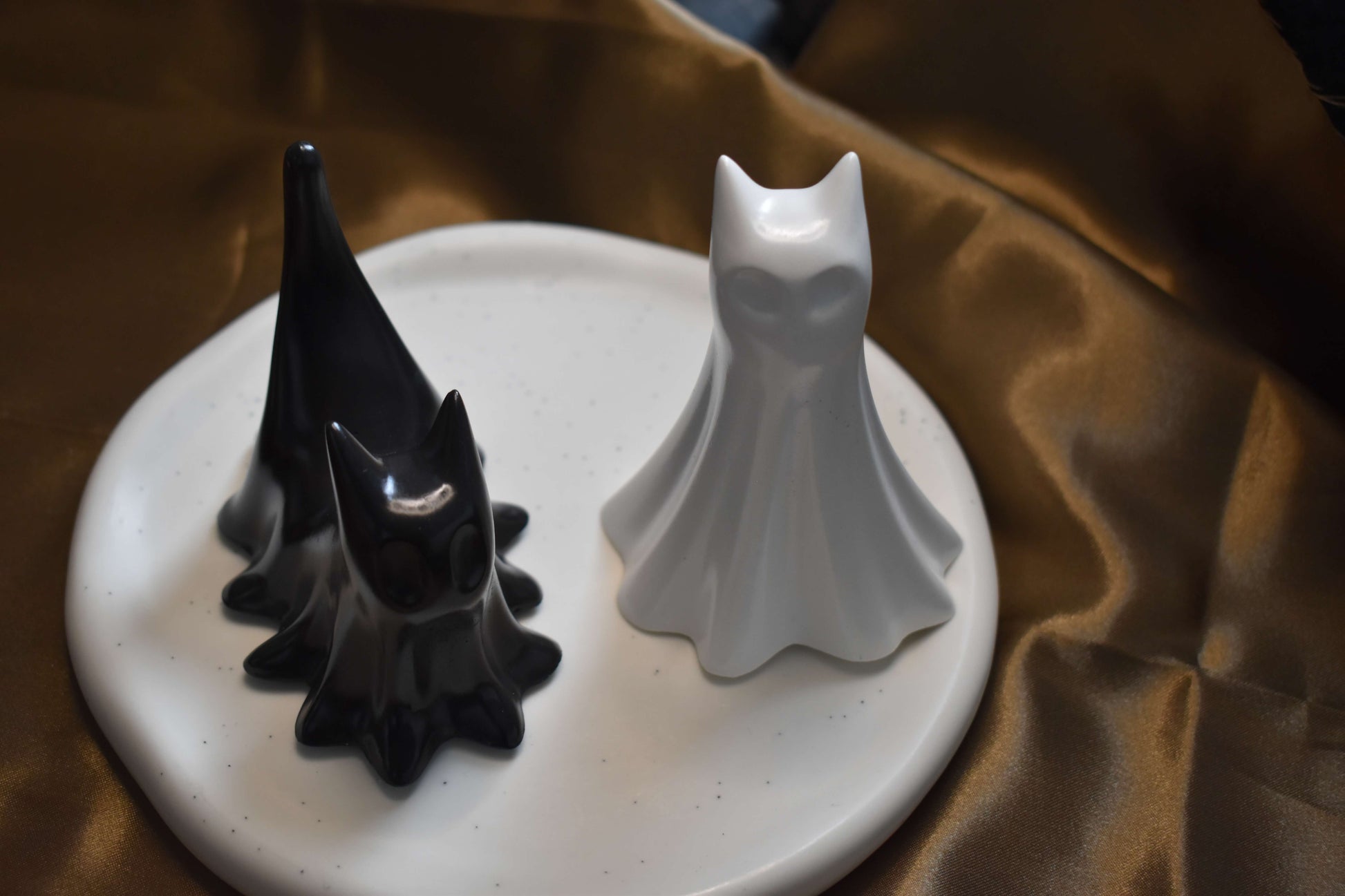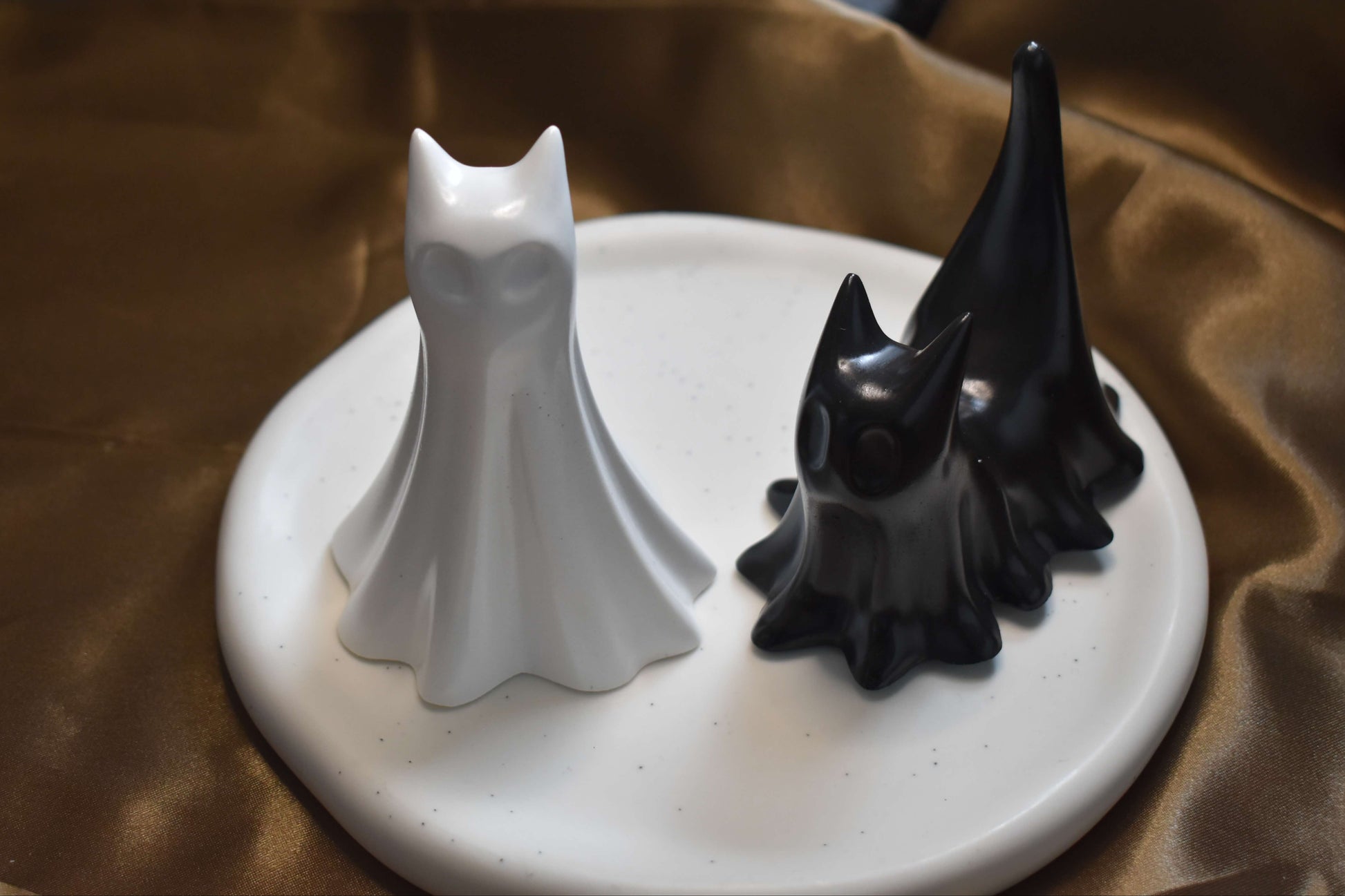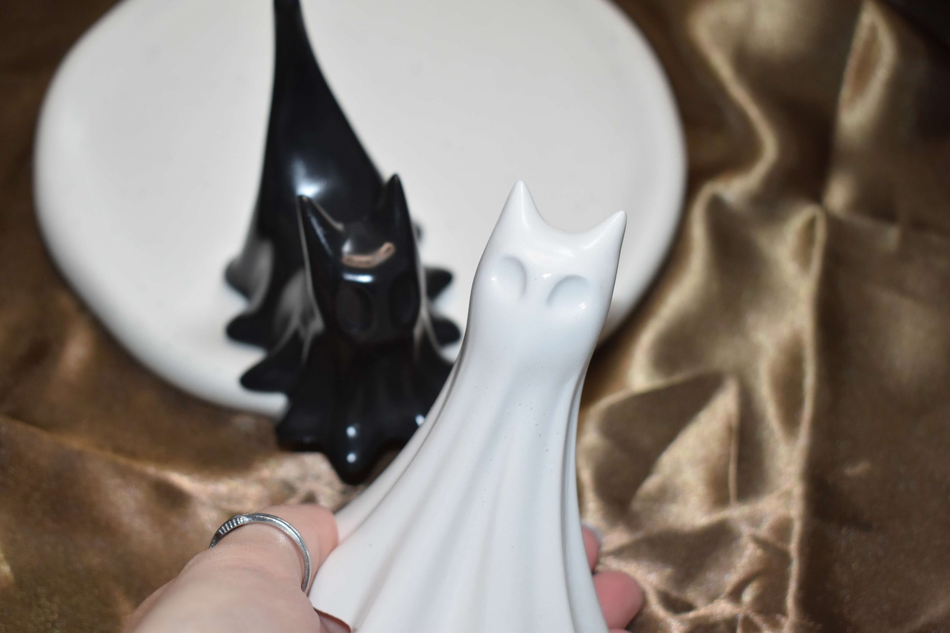 Ob in klassichem Weiss oder tiefem Schwarz - diese Katzenfiguren bringen einen Hauch Magie und Ruhe in dein Zuhause. Ideal als dekorativer Blickfang, für deine Halloween-Deko oder als stilvolles Ganzjahres Accessoire.
