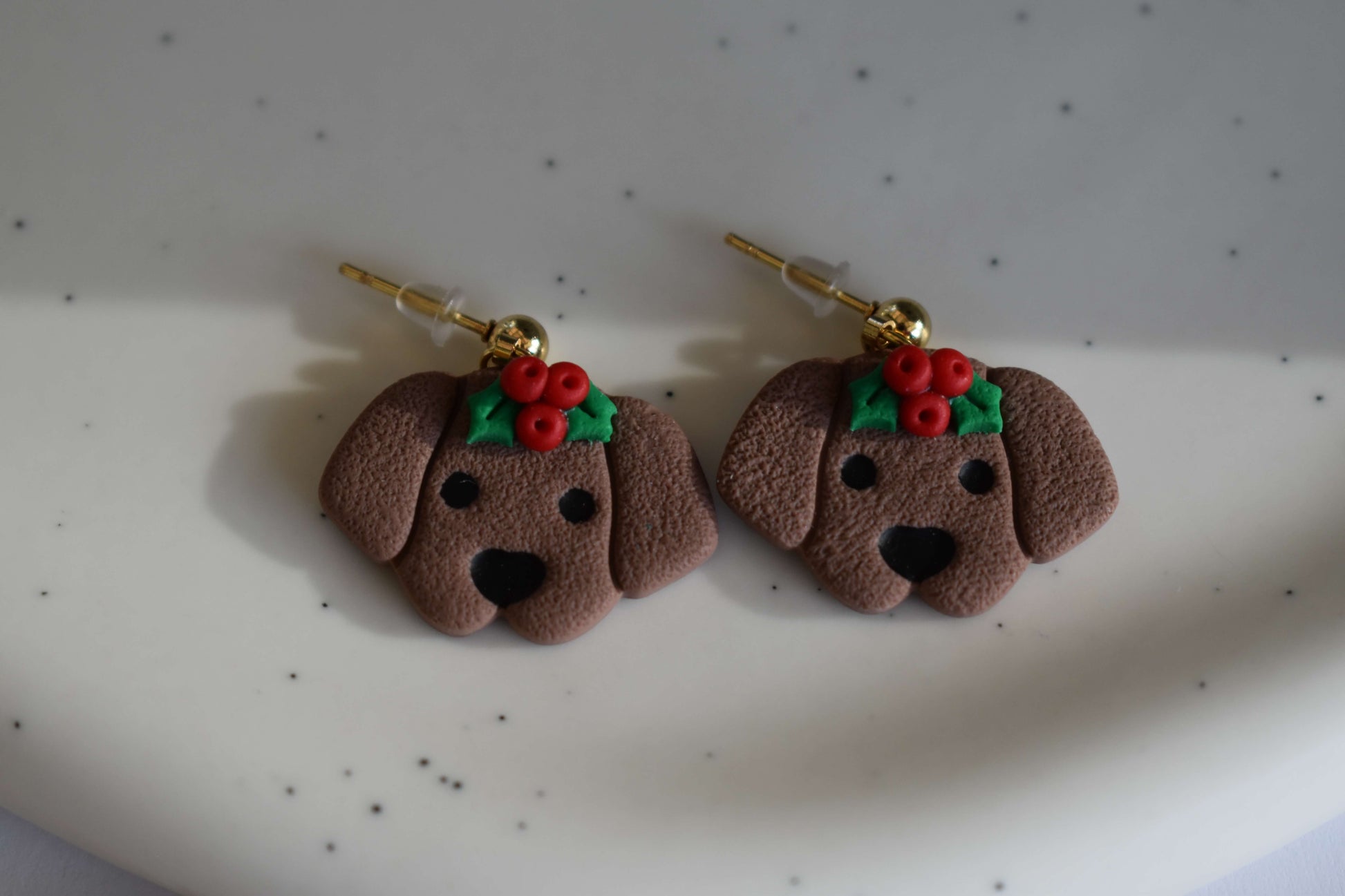 Setze ein zuckersüsses Statement mit unseren Ohrringen - Winter Pups! Diese süssen Schmuckstücke werden aus hochwertigem Polymer Clay gefertigt und mit viel Sorgfalt und Liebe zum Detail von Hand hergestellt. Die Hunde bringen sofort gute Laune und ein Stück Feiertagsstimmung in deinen Look. Mit ihrem Stechpalmenkranz passen sie perfekt zu kuscheligen Outfits - ein Accessoire, das garantiert Herzen schmelzen lässt.