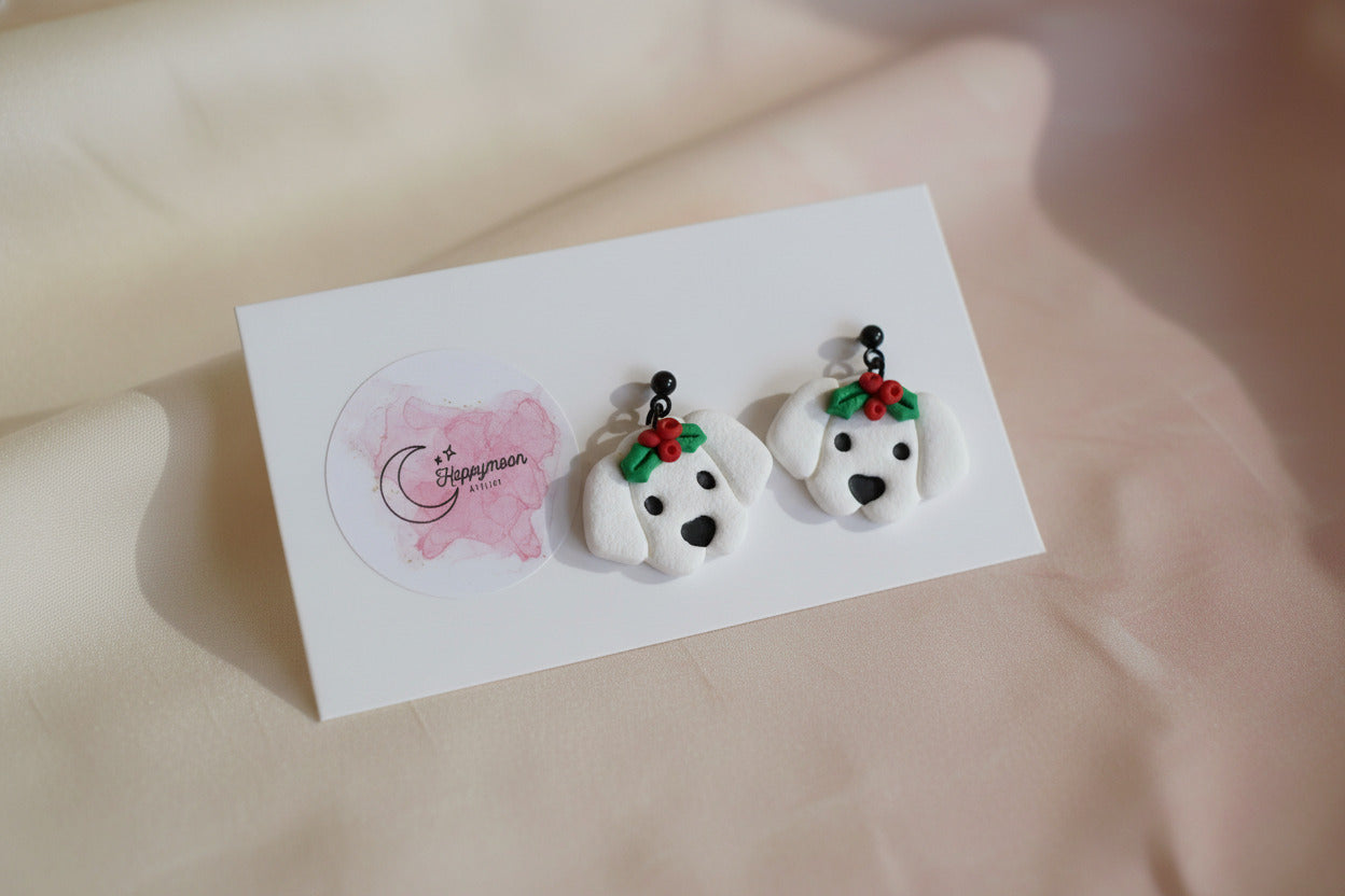 Handgemachte Ohrringe - Winter Pups - White Edition