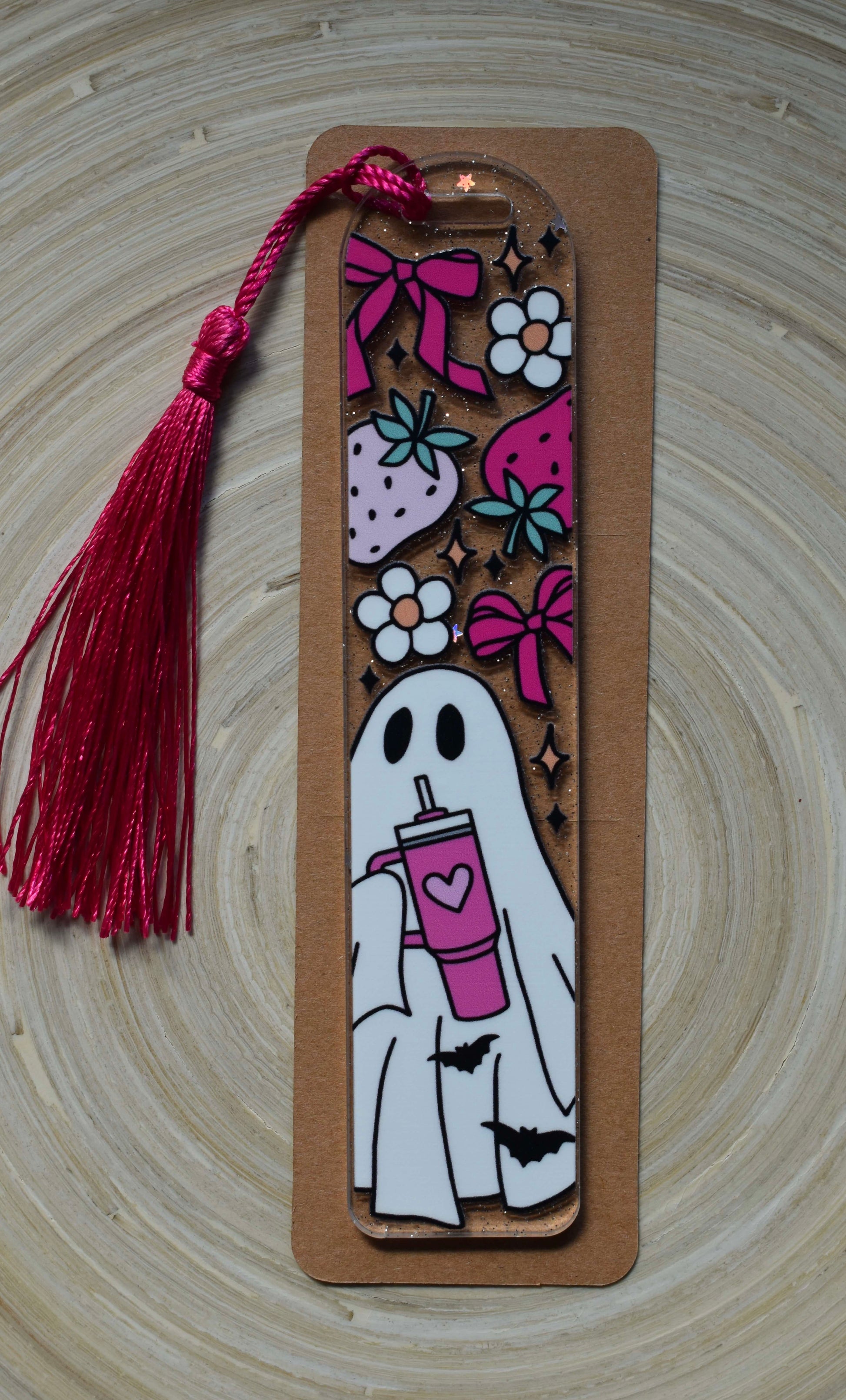 Verleihe deinen Büchern eine herbstliche Note mit diesem handgefertigten Acryl-Lesezeichen. Mit seinem detailreichen Design aus Blumen und einem Geist, verleihst du deinem nächsten Leseabenteuer einen besonderen Charme!