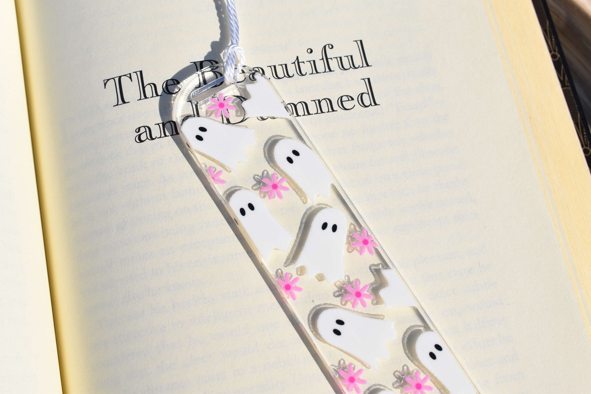 Verleihe deinen Büchern eine herbstliche Note mit diesem handgefertigten Acryl-Lesezeichen. Mit seinem detailreichen Design aus Geistern und Blumen, verleihst du deinem nächsten Leseabenteuer einen besonderen Charme!