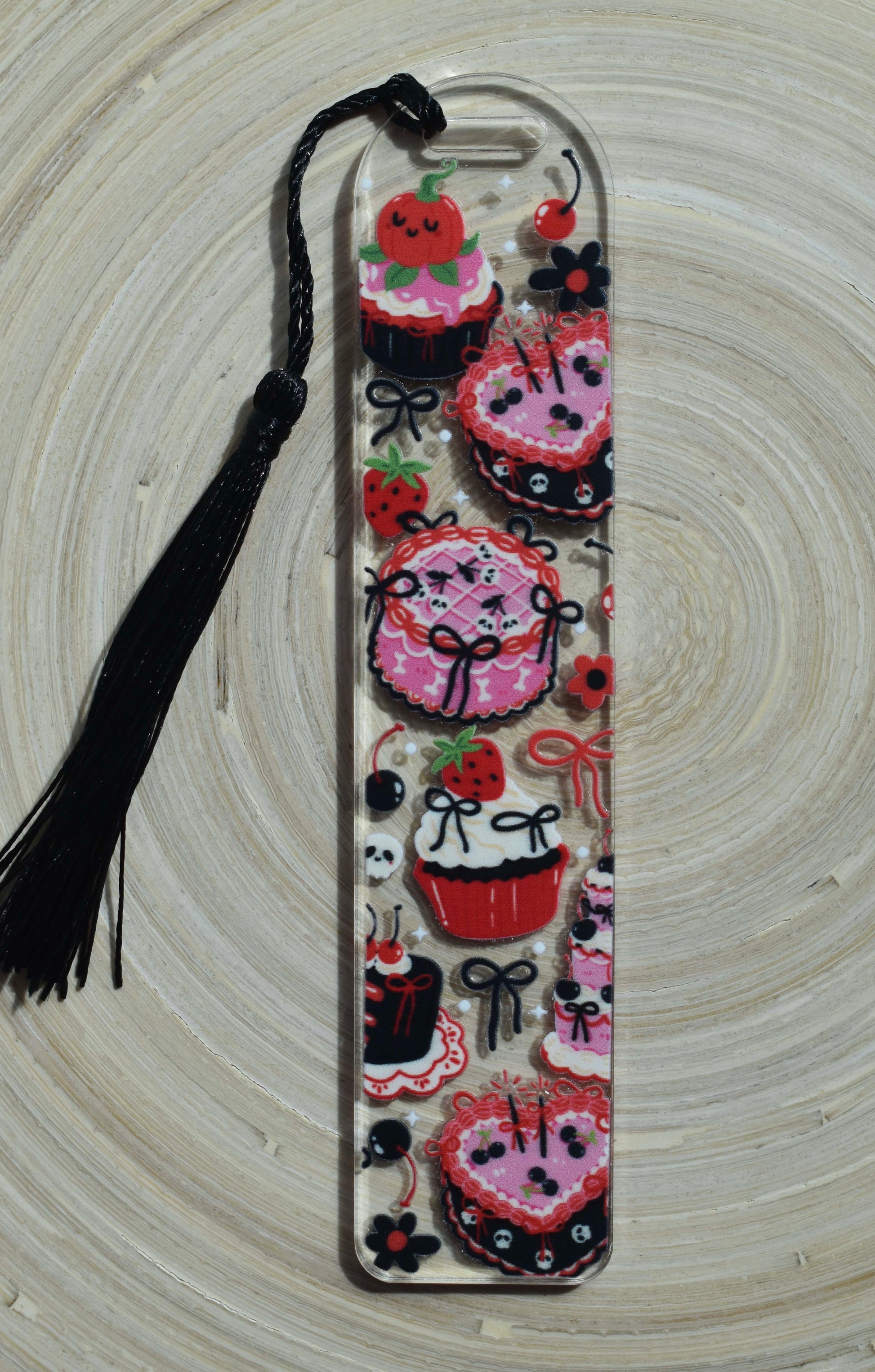 Verleihe deinen Büchern eine spooky Note mit diesem handgefertigten Acryl-Lesezeichen. Mit seinem detailreichen Design aus süssen Köstlichkeiten verleihst du deinem nächsten Leseabenteuer einen besonderen Charme!
