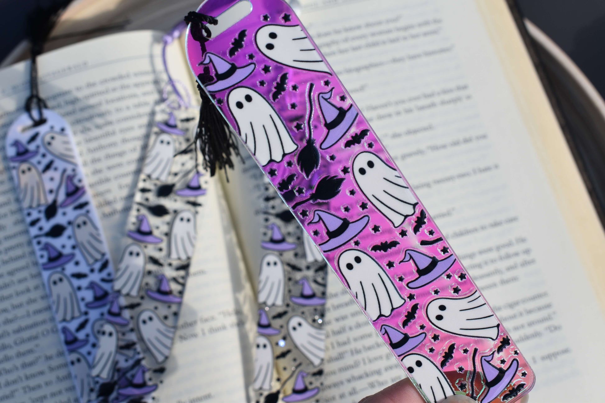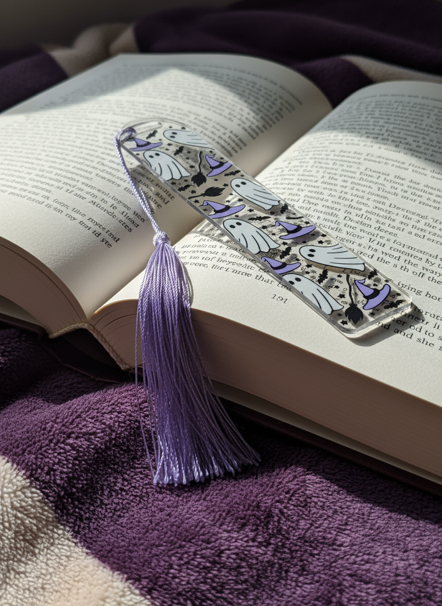 Verleihe deinen Büchern eine süsse spooky Note mit diesem handgefertigten Acryl-Lesezeichen. Mit seinem Halloween Design verleihst du deinem nächsten Leseabenteuer einen besonderen Charme!