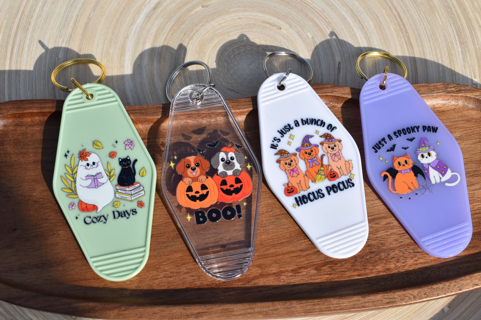Jeder Anhänger wird mit viel Liebe von Hand mit hochwertiger UV-DTF-Folie veredelt. Diese sorgt für brillante Farben, lange Haltbarkeit und eine besonders edle Oberfläche. Ob am Schlüsselbund, an der Handtasche oder am Rucksack - diese liebevoll gestalteten Anhänger bringen eine Portion Gemütlichkeit und Halloween-Flair in deinen Alltag.