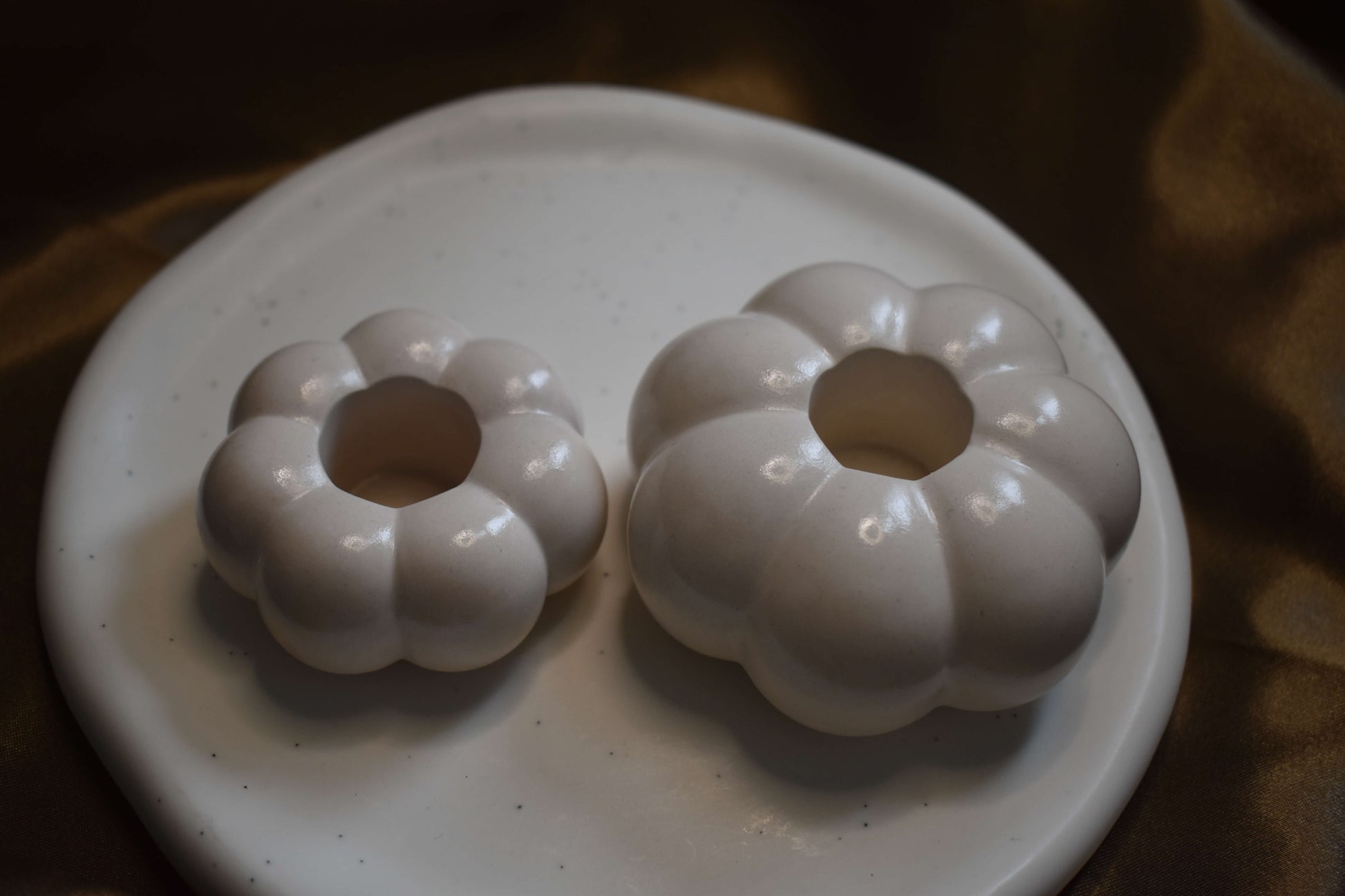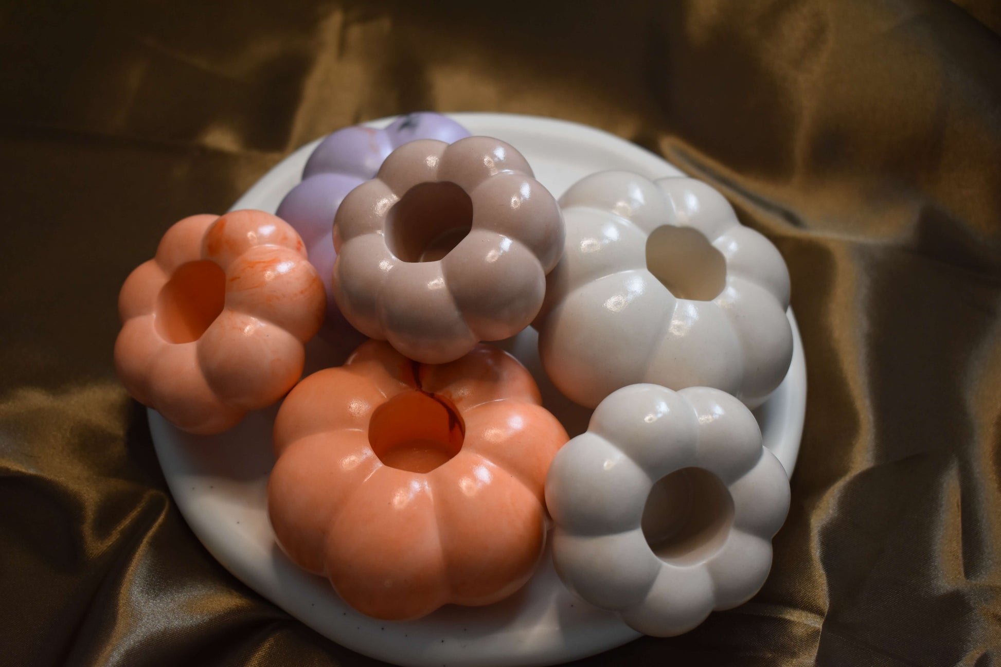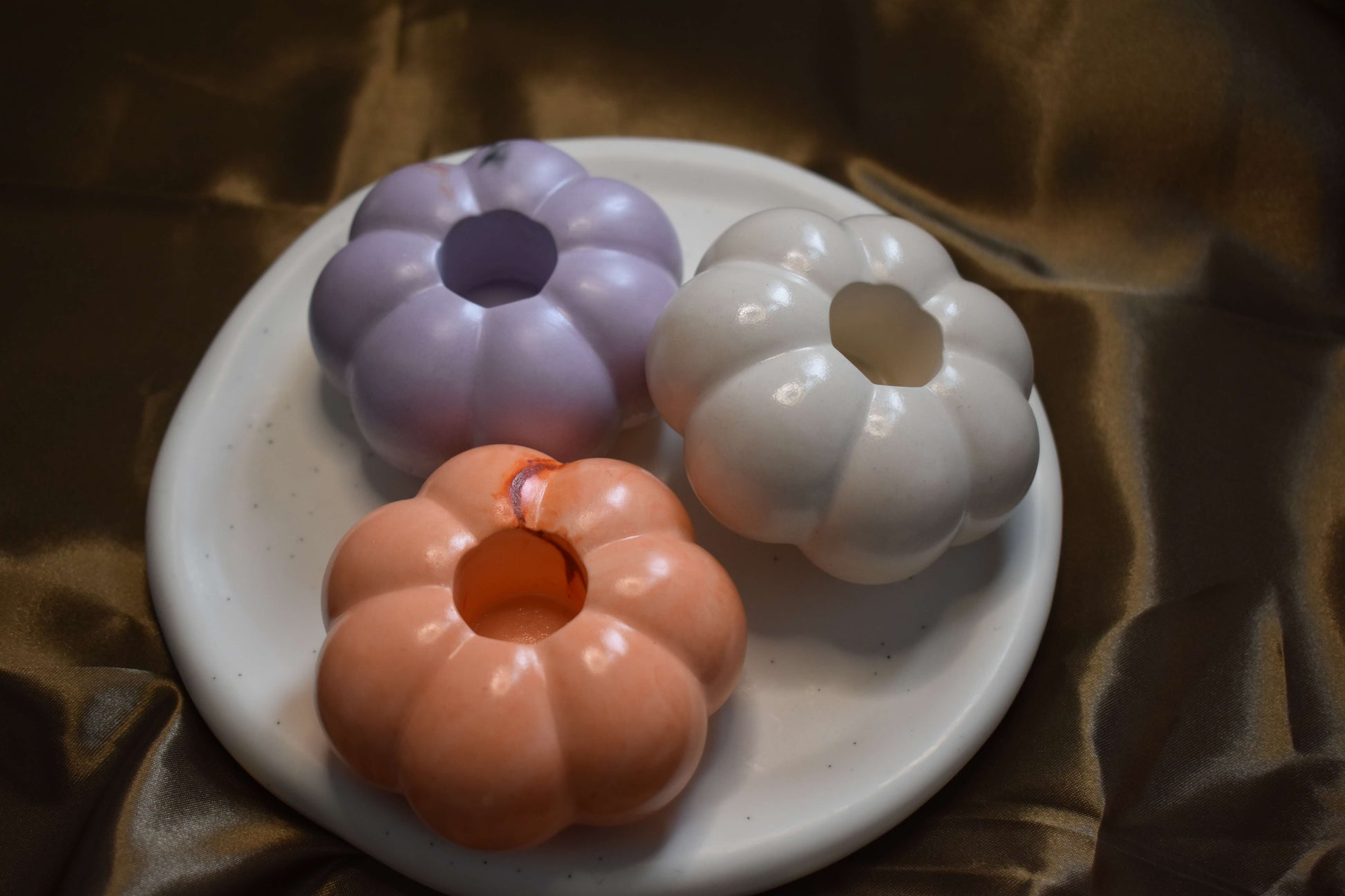 Ob in sanftem Weiss, zartem Flieder oder warmem Apricot - dieser kleine Kürbis-Kerzenhalter ist das perfekte Accessoire für deine Herbstdekoration. Ideal für Stabkerzen - in der Grösse S oder M erhältlich.