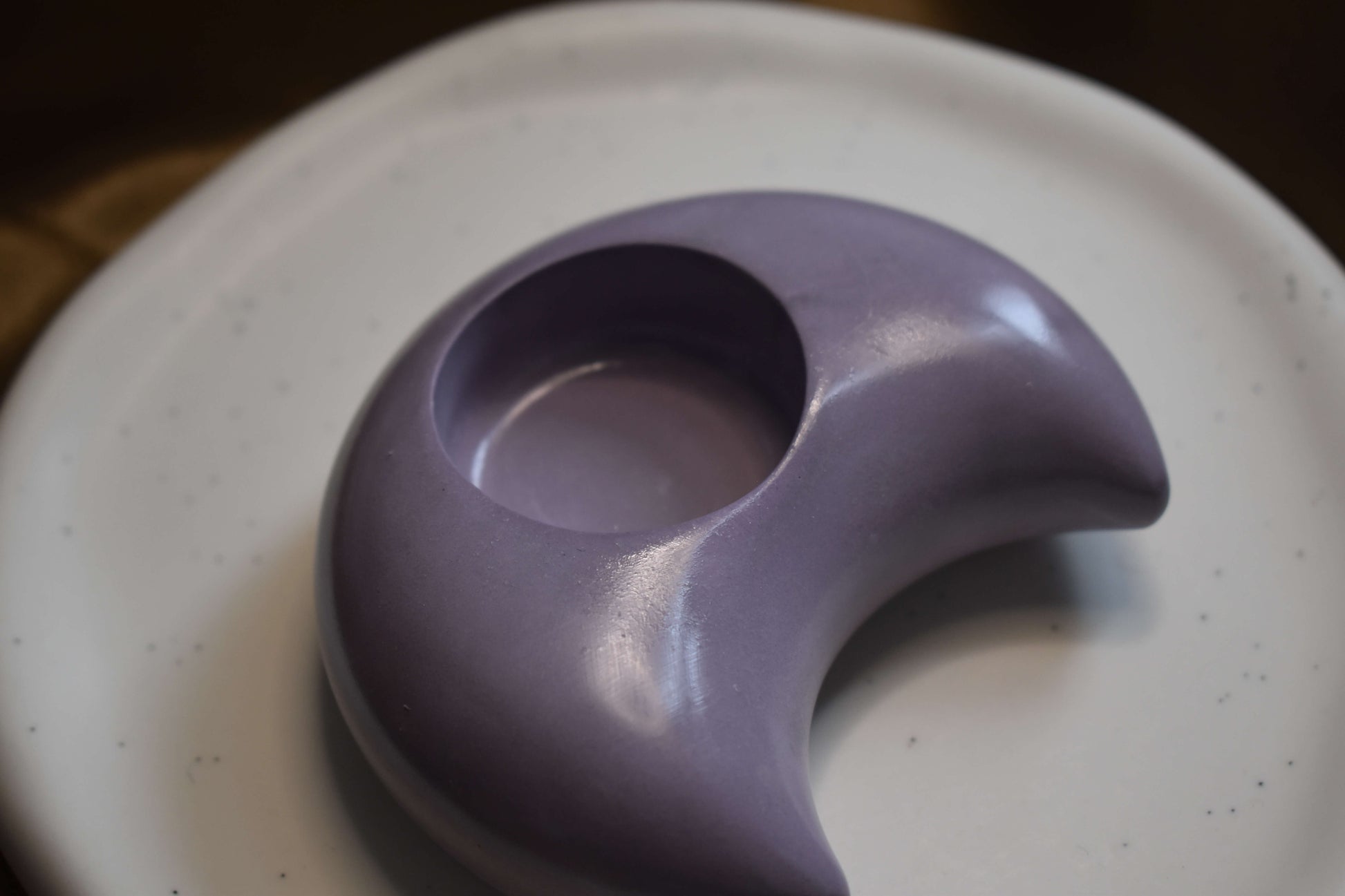 Der Midnight Moon Teelichhalter vereint moderne Schlichtheit mit handwerklicher Perfektion. Jeder Teelichthalter wird von Hand aus hochwertigem Raysin gegossen, sorgfälltig geschliffen und mit einem hochwertigen Lack versiegelt, um ihm eine glatte, leicht glänzende Oberfläche zu verleihen.