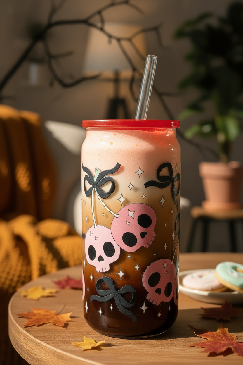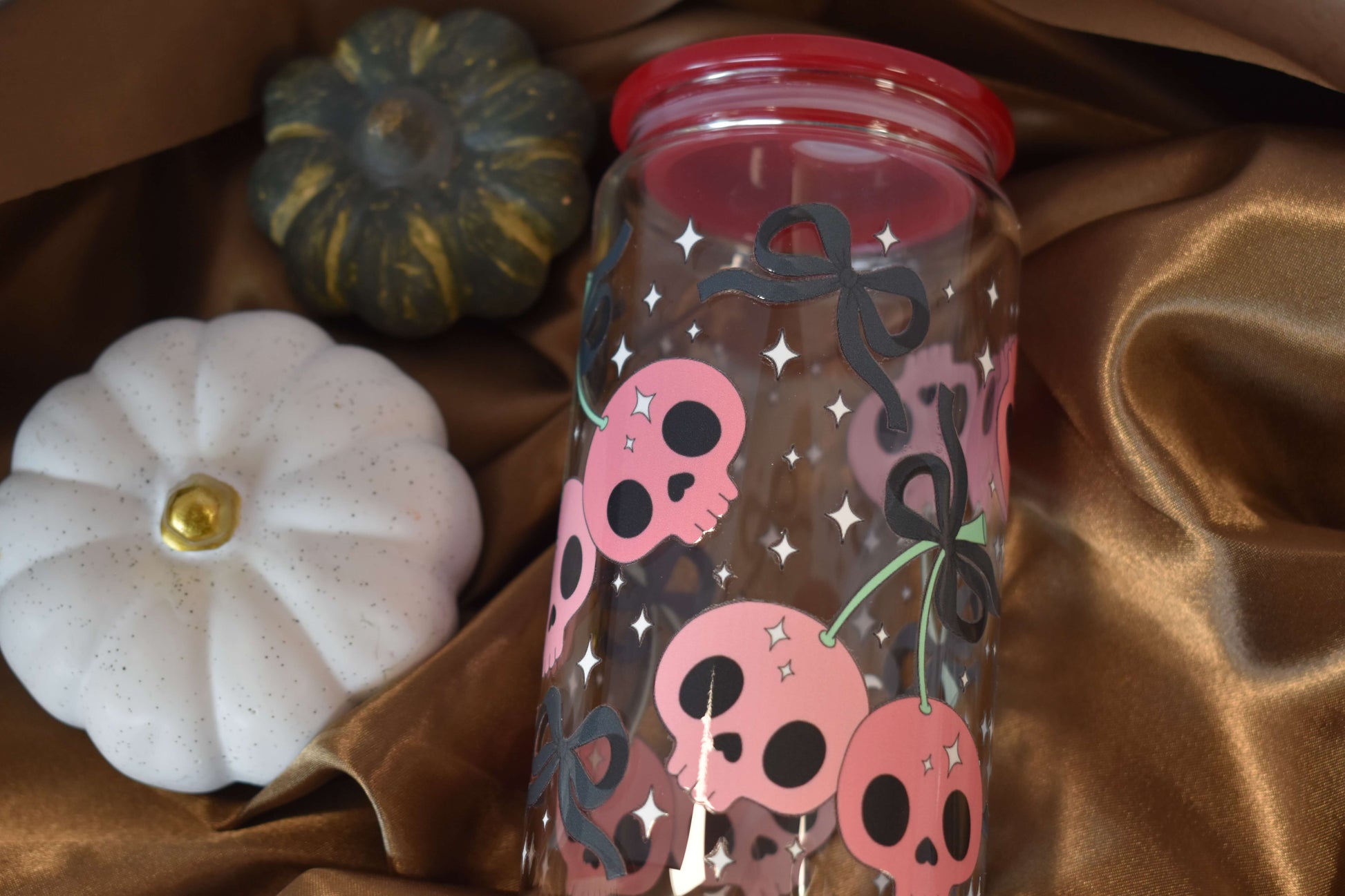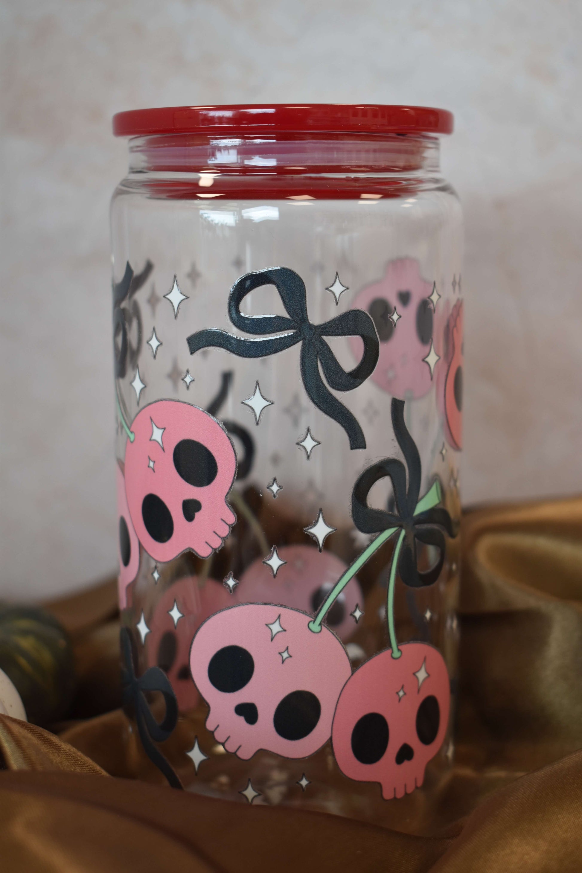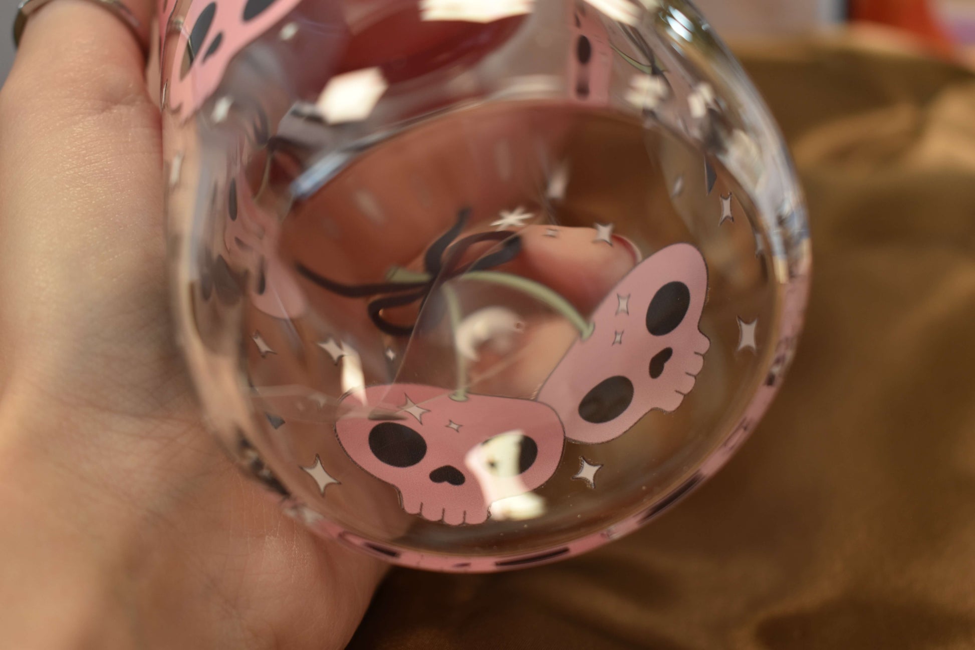 Stylisch, spooky & mit einer Prise Glamour - das handveredelte Trinkglas "Pretty Poison" ist ein echtes Statement-Piece für deine spooky Season! Die zarten pinken Totenköpfe im Kirschen-Design mit Schleifen und Sternen vereinen Halloween-Flair mit femininer Eleganz - perfekt für alle, die es etwas verspielter, aber trotzdem edel mögen.