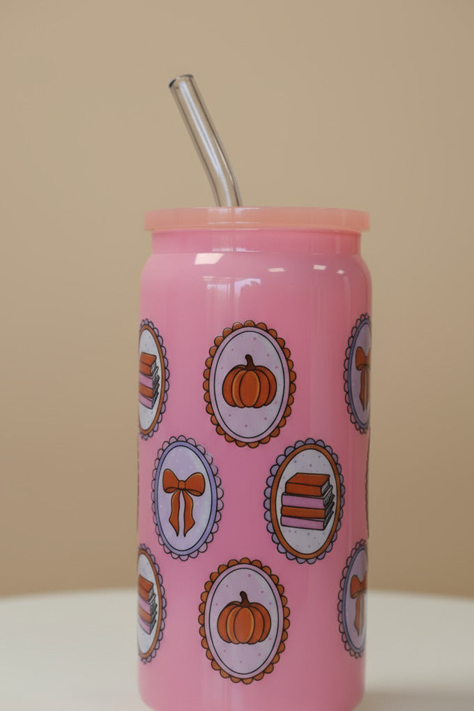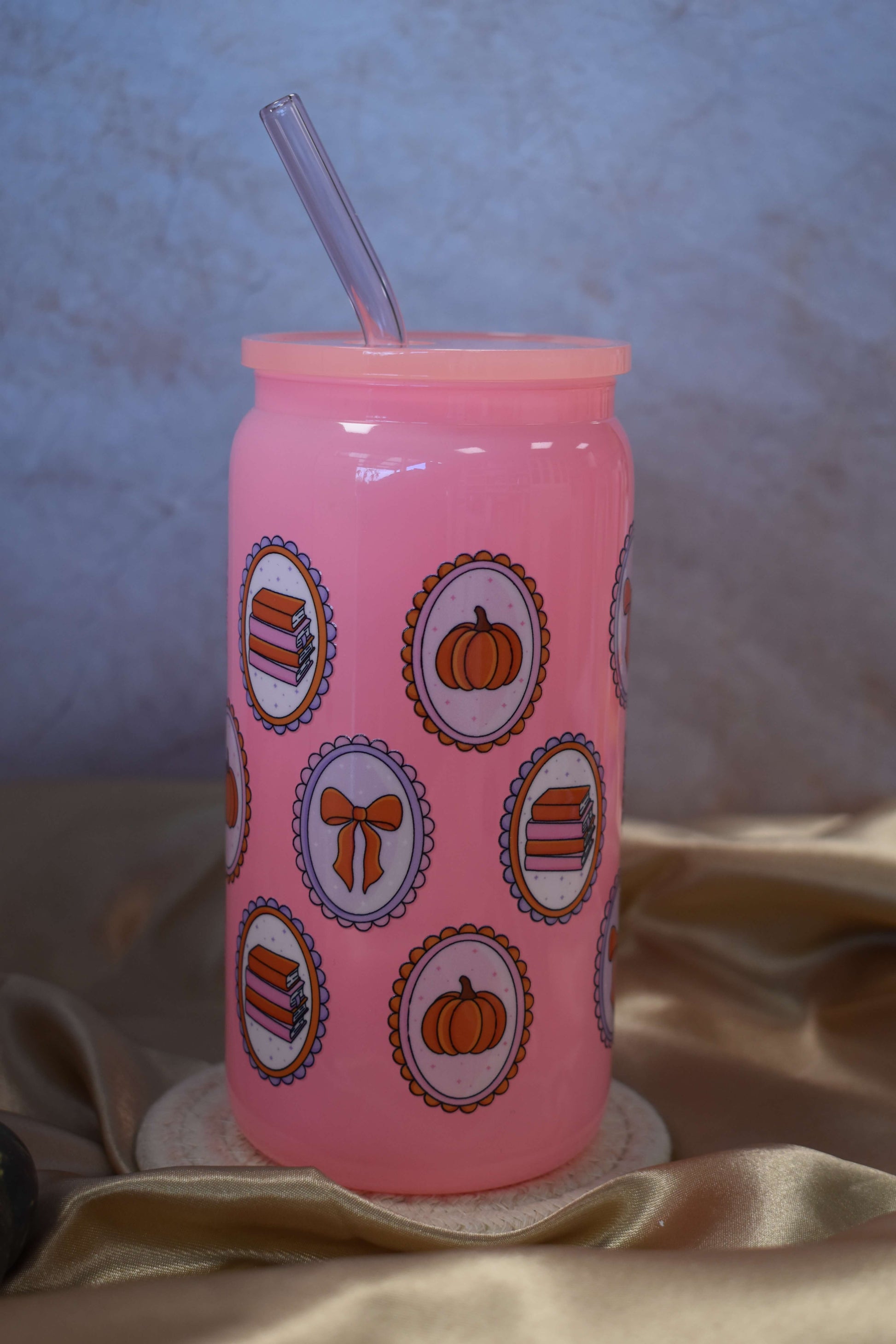 Das handveredelte Trinkglas "Pumpkin Tales" ist eine Hommage an gemütliche Lesestunden, warme Farben und den Zauber des Herbstes. Das sanft rosafarbene Glas ist mit liebevollen Motiven verziert - Bücher, Kürbisse und Schleifen in zarten Pastelltönen, eingefasst in verspielte Rahmen. Perfekt für alle, die es herbstlich, feminin und ein bisschen nostalgisch mögen.