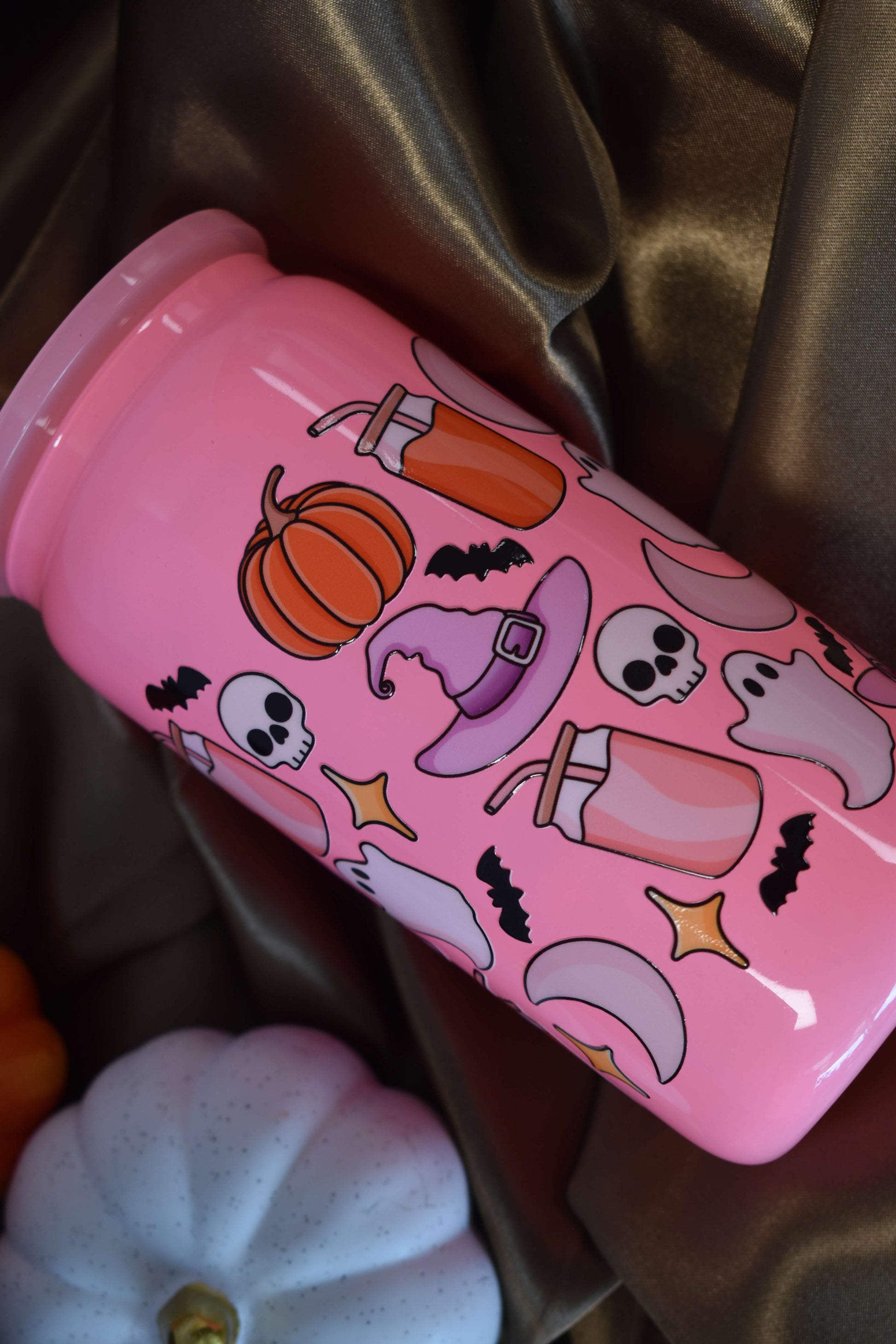 Süss trifft spooky - das handveredelte Trinkglas "Spooky Sips" bringt verspielte Halloween-Stimmung in zarten Bonbonfarben auf deinen Tisch!