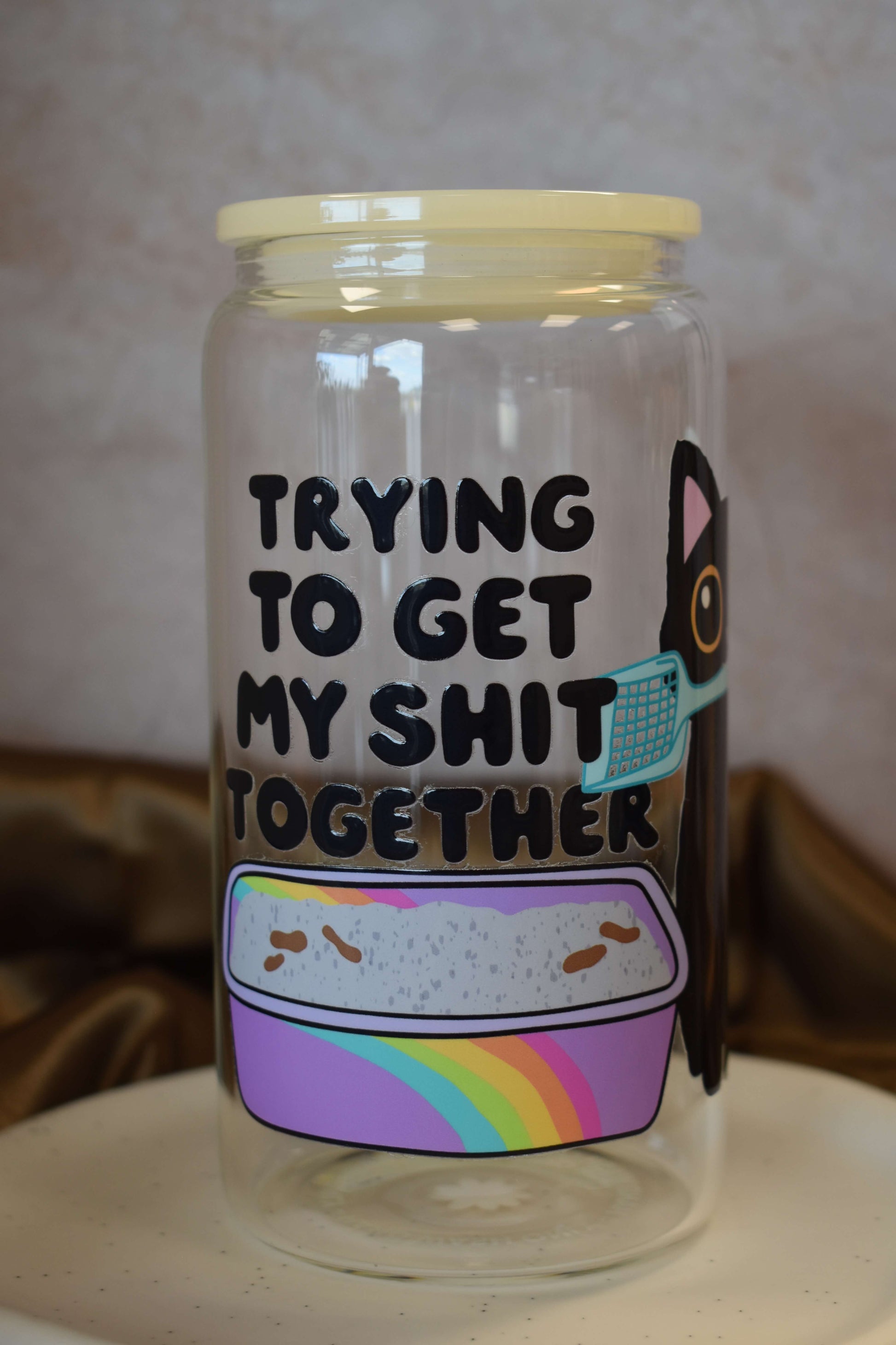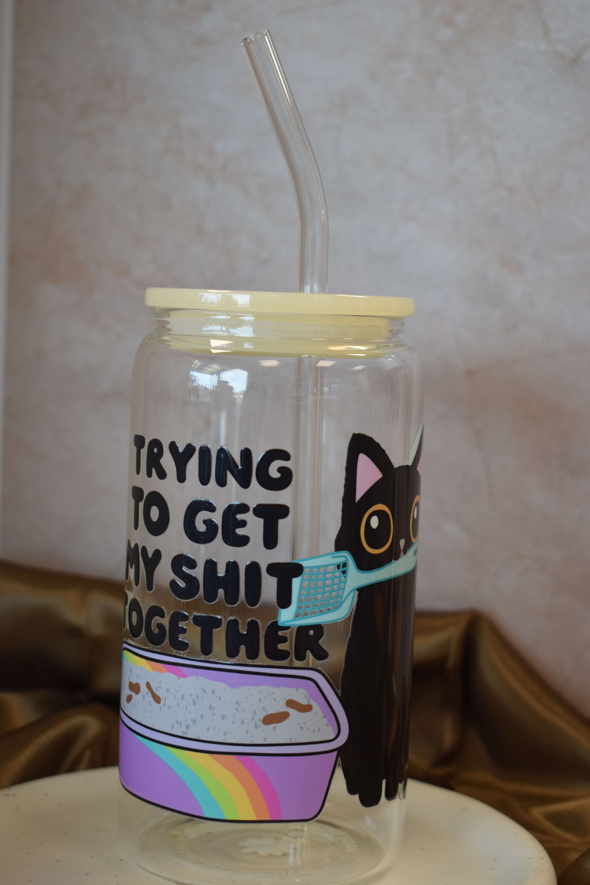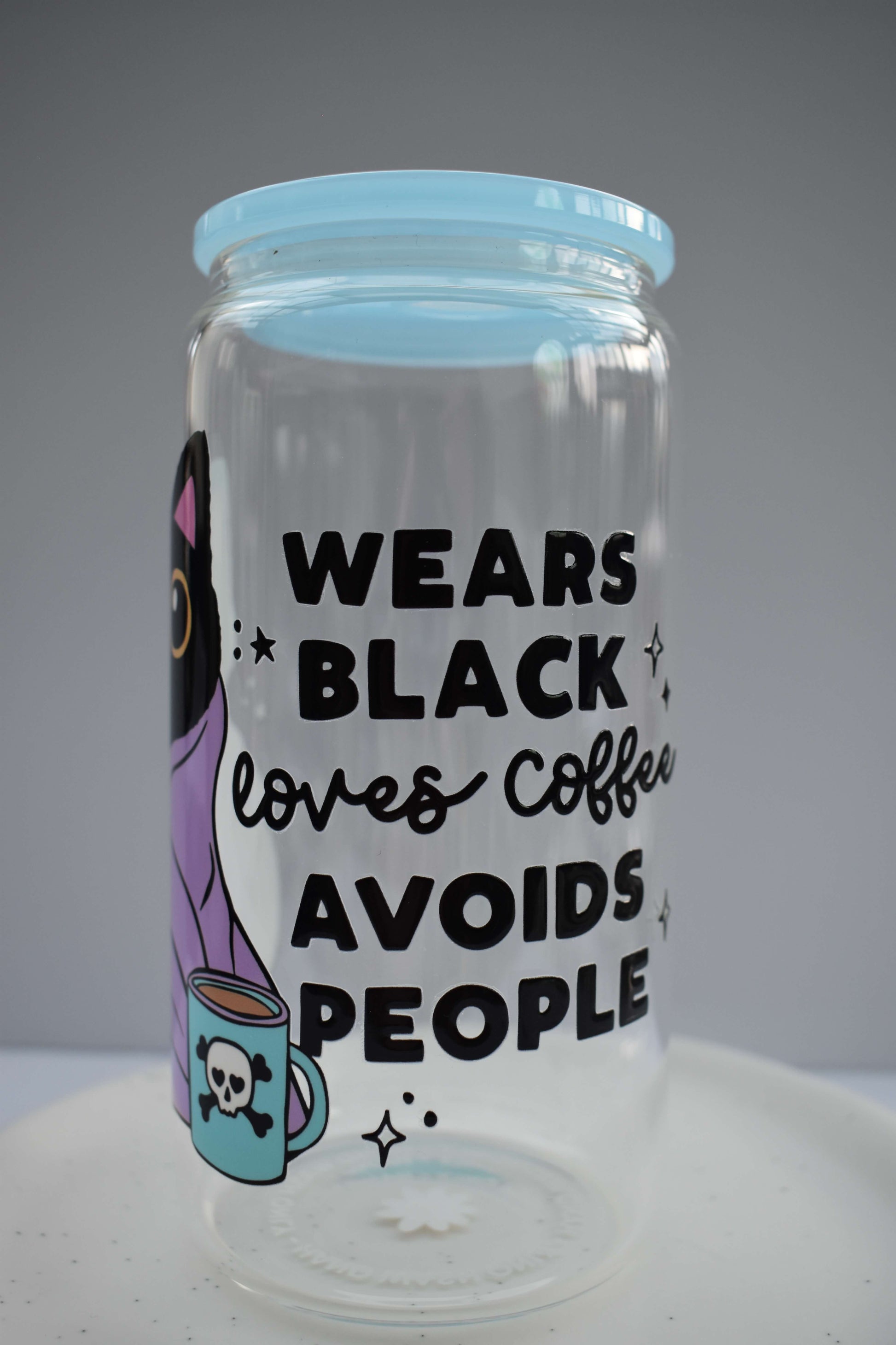 Mit ihren kräftigen Farben, niedlichen Katzenmotiven und einem Hauch Selbstironie sind diese Gläser perfekt für alle, die ihren Iced Coffee genauso schwarz mögen wie ihren Humor.