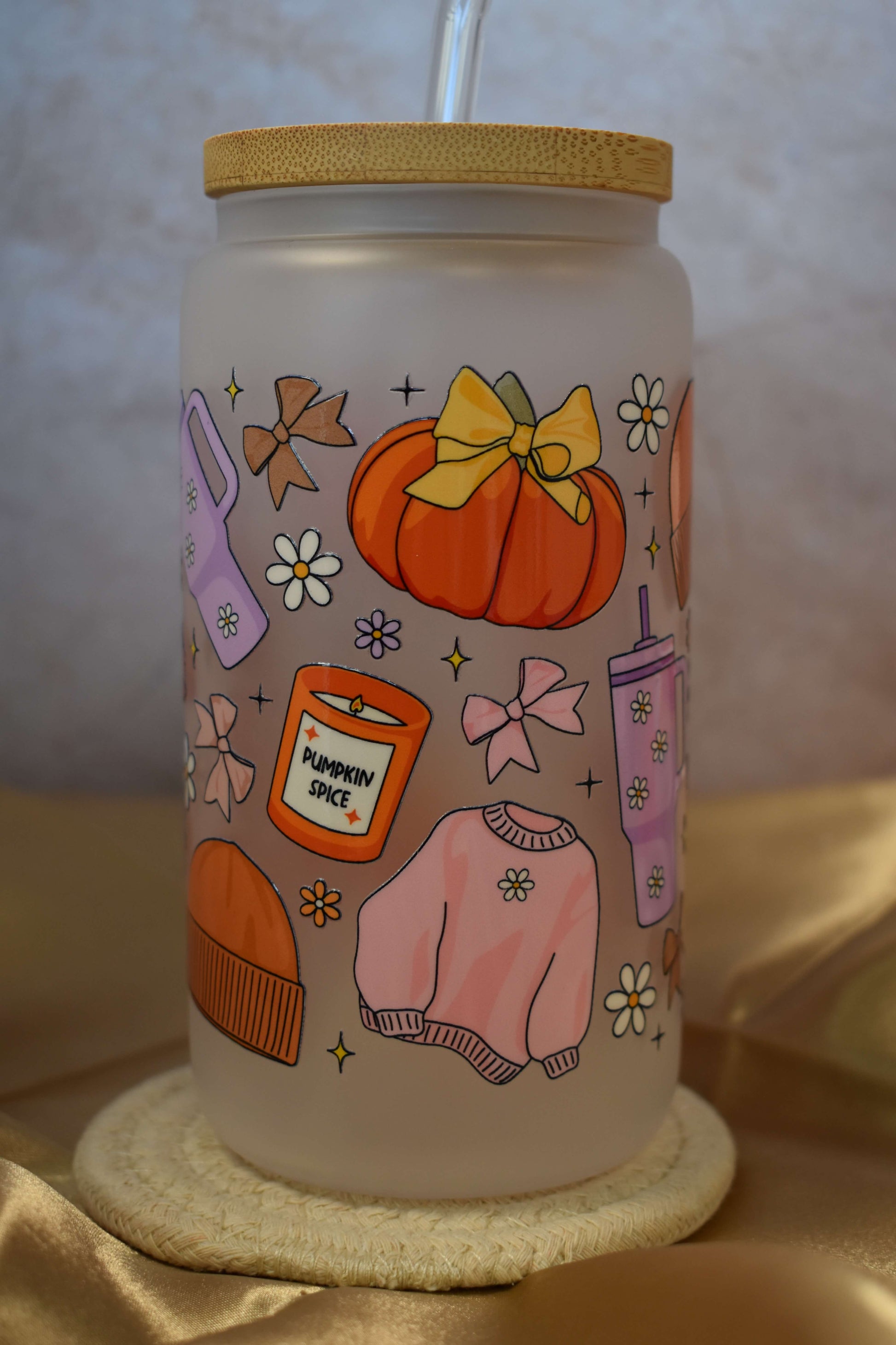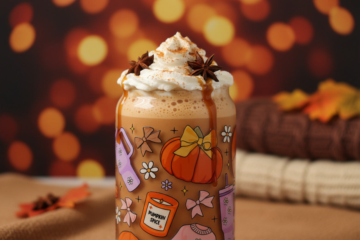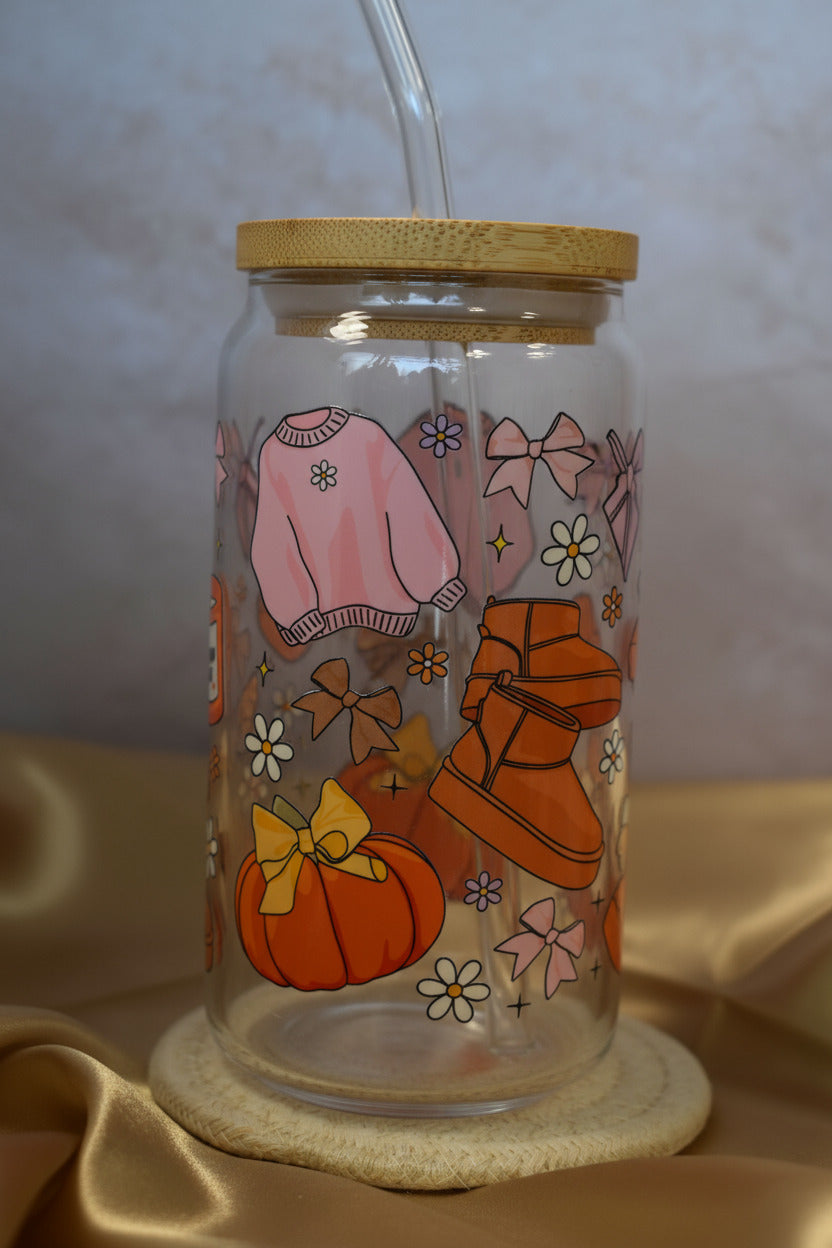 Das perfekte Glas für alle, die den Herbst in vollen Zügen geniessen wollen! Unser handveredeltes Trinkglas "Sweater Season" vereint alles, was die goldene Jahreszeit so besonders macht: Kürbisse, Strickpullis, Kerzen und jede Menge Gemütlichkeit.