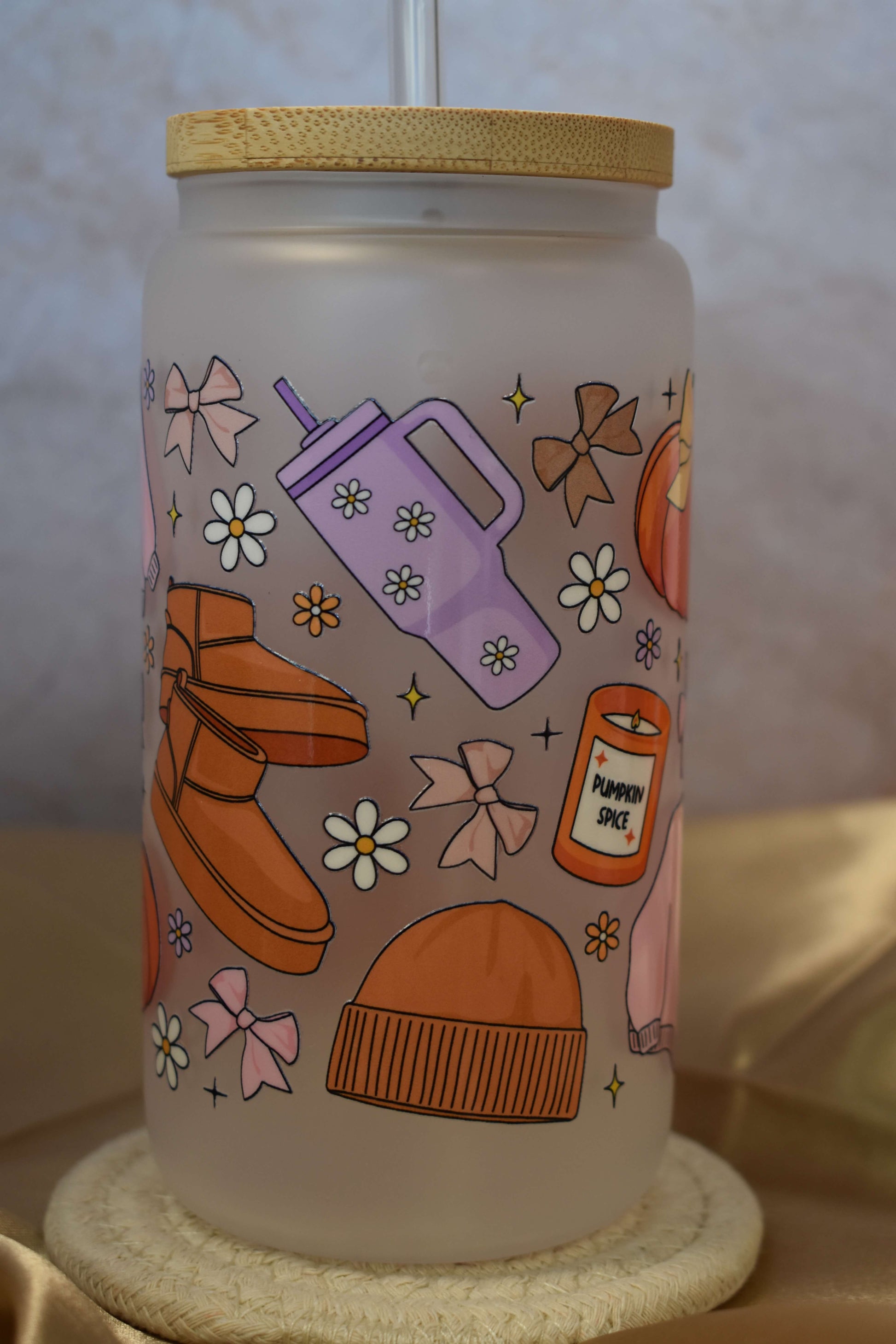 Dieses Glas kann mit klarem Glasstrohhalm & Deckel oder ohne Zubehör gekauft werden. In unserem Shop findest du zudem weiteres passendes Zubehör, wie z.B. Acryldeckel, farbige Strohhalme oder Untersetzer, um dein Glas individuell zu ergänzen.