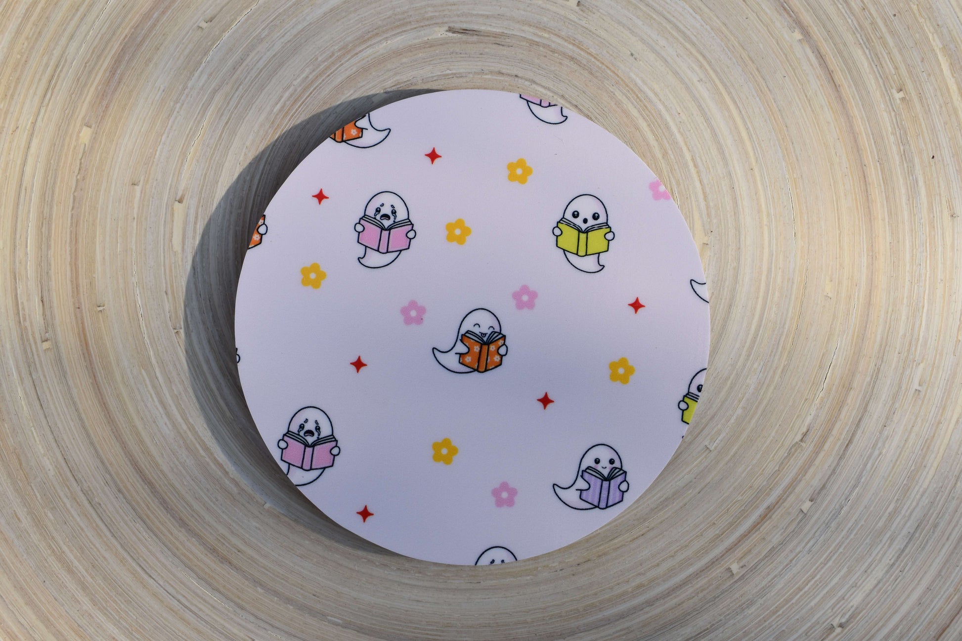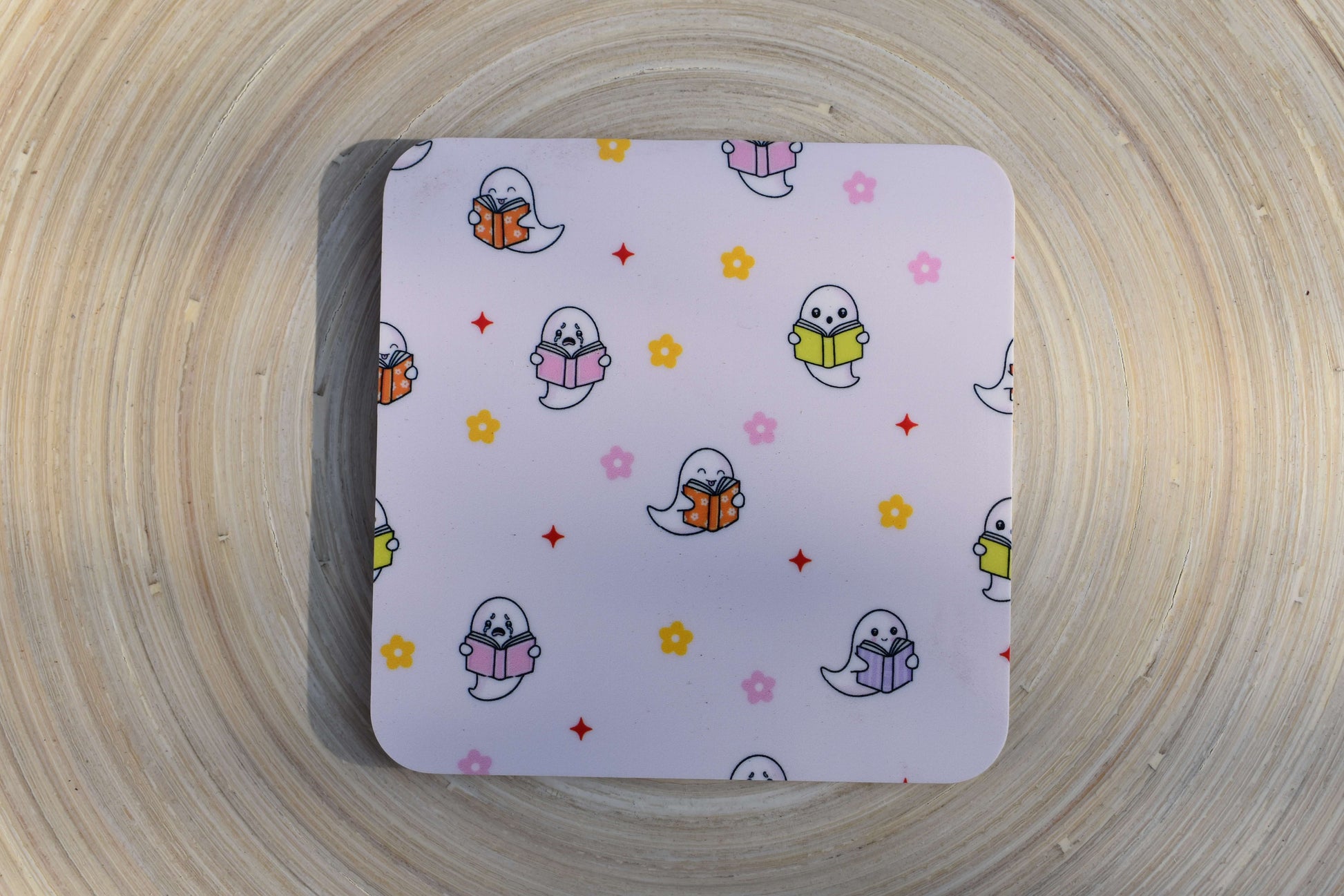 Diese kleinen Geister haben einen Faible für gute Geschichten! Unsere handgefertigten Untersetzer "Haunted Reads" aus MDF-Holz sind perfekt für alle Booklovers, die auch im Herbst gemütliche Lesestunden geniessen möchten. Das Design zeigt niedliche Geister mit bunten Büchern, umgeben von kleinen Blümchen und Sternchen - ideal für spooky cozy vibes!
