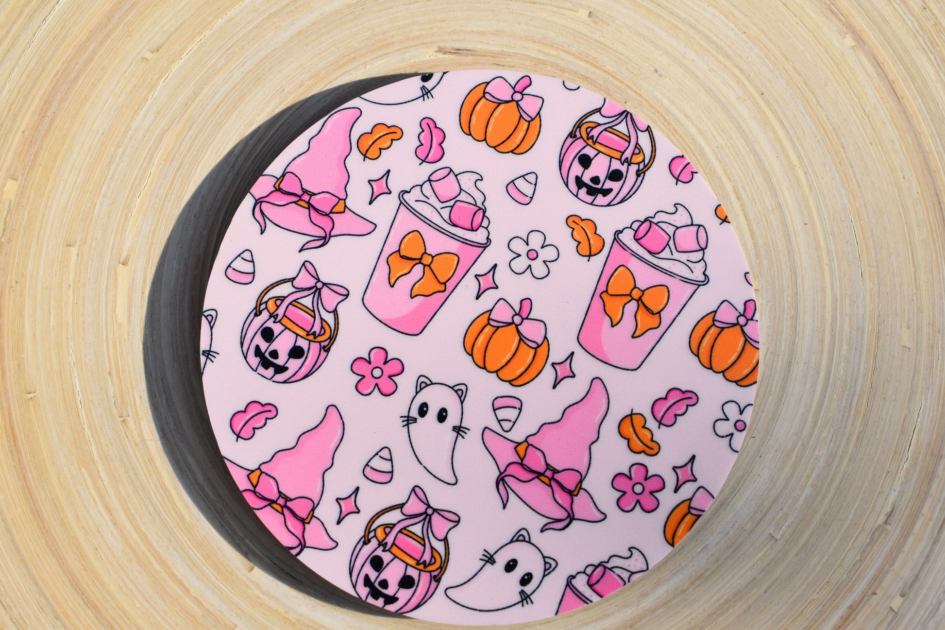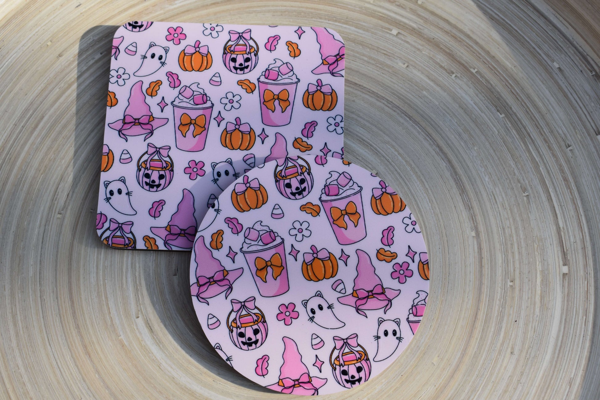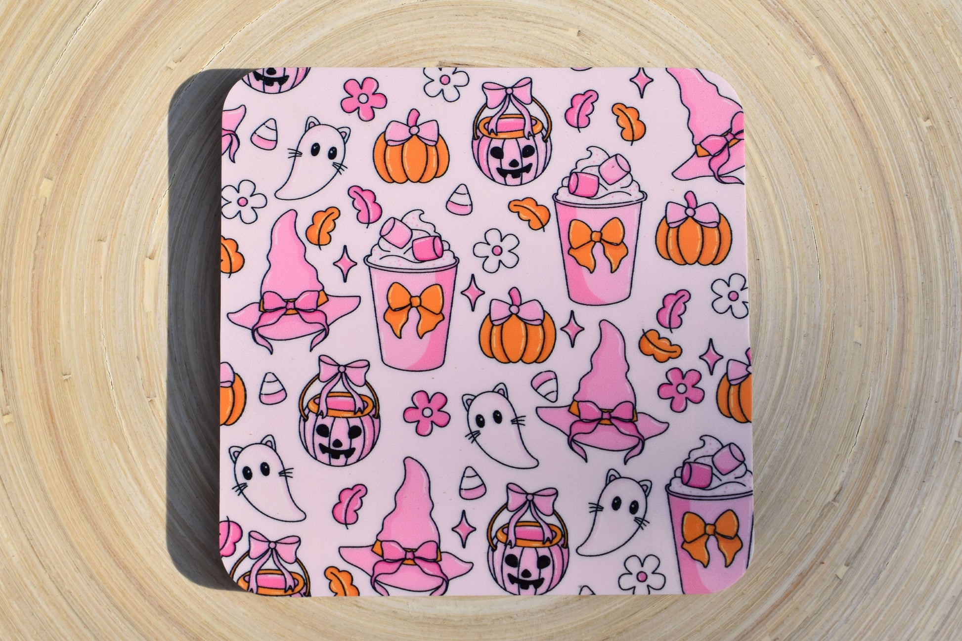 Ein bisschen Magie für deinen Tisch! Unser handgefertigter Untersetzer "Sweet Spell" aus MDF-Holz bringt pinke Halloween-Vibes in dein Zuhause - mit süssen Geistern, Hexenhüten, Kürbissen, Schleifen und Marshmallow-Drinks. Das perfekte Accessoire für alle, die es verspielt, cozy und ein bisschen hexenhaft lieben.