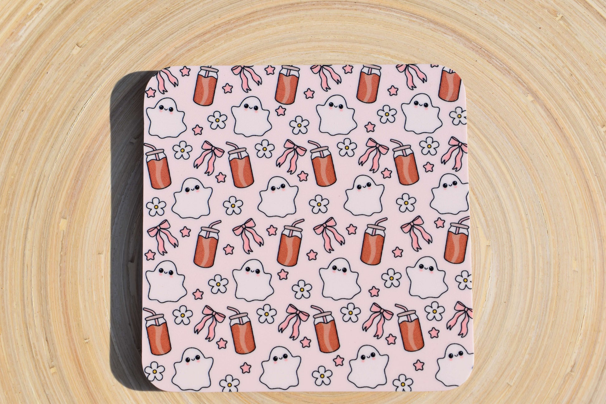 Unser handgefertigter Untersetzer "Sweet Spirit" aus MDF-Holz vereint alles, was du an Halloween und Herbst liebst - niedliche kleine Geister, rosa Schleifen, Blumen und herbstliche Getränke. Ein Mix aus spooky und cozy - perfekt für alle, die Halloween lieber in Pastell als in Schwarz feiern.
