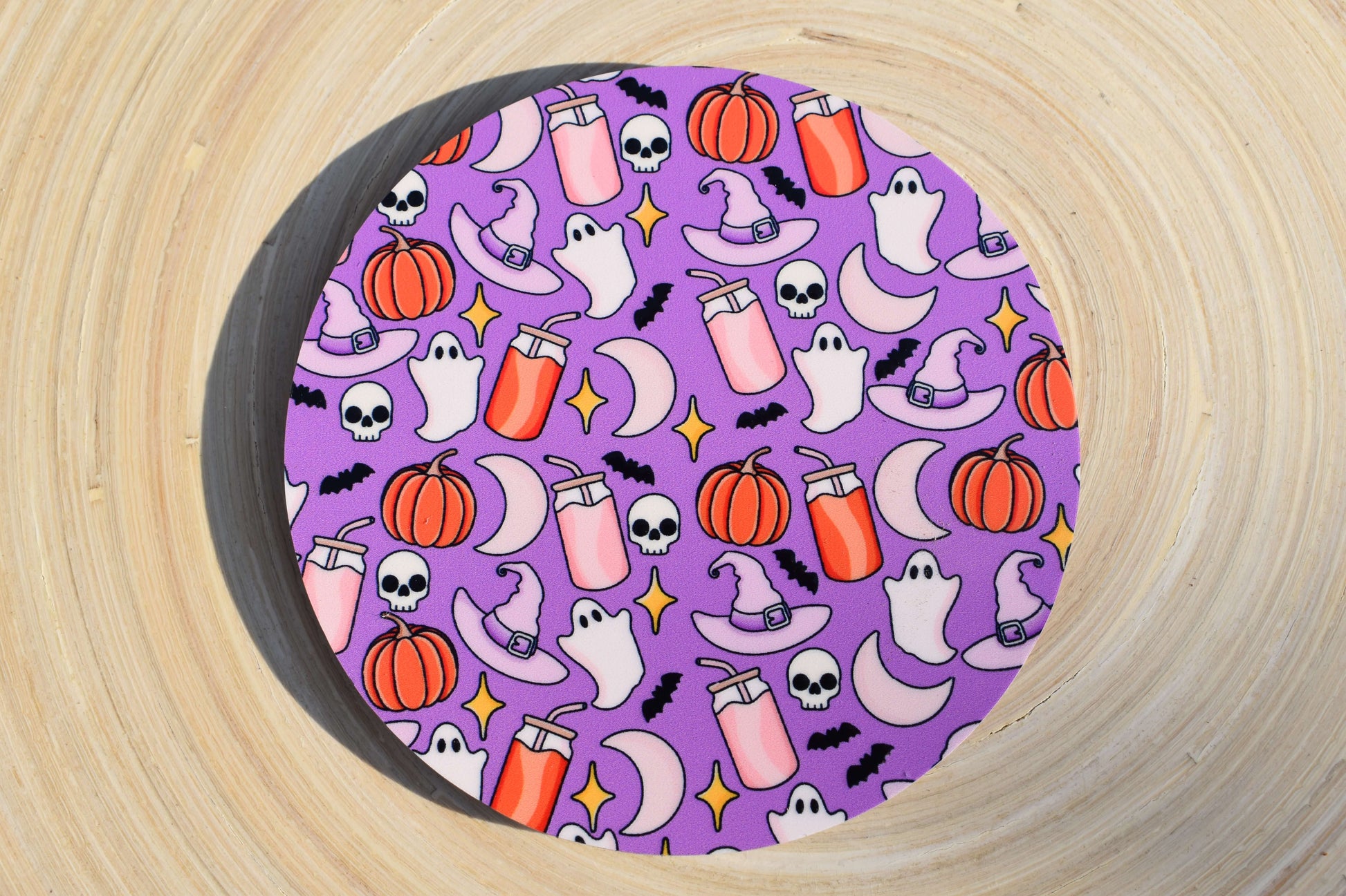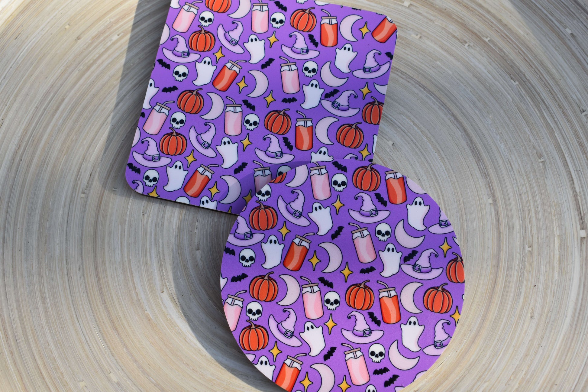 Bringe Gemütlichkeit und Buchliebe in deinen Alltag mit diesem handgefertigten Untersetzer aus MDF-Holz. Das verspielte Halloween-Design mit Kürbissen, Hexenhüten und funkelnden Monden macht jeden Schluck zu einem kleinen Wohlfühlmoment - perfekt für Leseratten und kreative Köpfe.